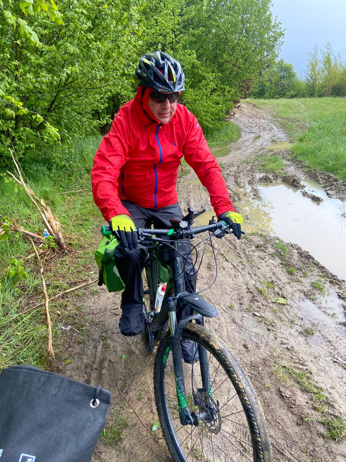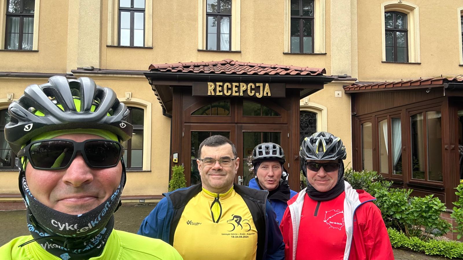 Do ekipy na trasie dołącza Robert (Hurrraaaaaaa!!!! < Wiwaty i pląsy>)! I w takim składzie ruszyliśmy na trasę, która, chyba na cześć nowego członka ekipy, powitała nas piękną pogodą i 10 stopniami ciepła! Po kilku kilometrach, pogoda jednak się zorientowała, że Robert to stary wyga więc wróciła do tradycji i uraczyła nas rzęsistym deszczem... Po trasie przydarzyła się nam pierwsza awaria, ale w naszej historii to już nie pierwszyzna więc szybko sobie z nią poradziliśmy. Kolarstwo to też braterstwo, więc z radością przyjeliśmy fakt, że spotkaliśmy zawodowych kolarzy z Prudnika. Po wymianie uścisków, uprzejmości i autografów, ruszyliśmy dalej znój i na spotkanie z przygodą.
